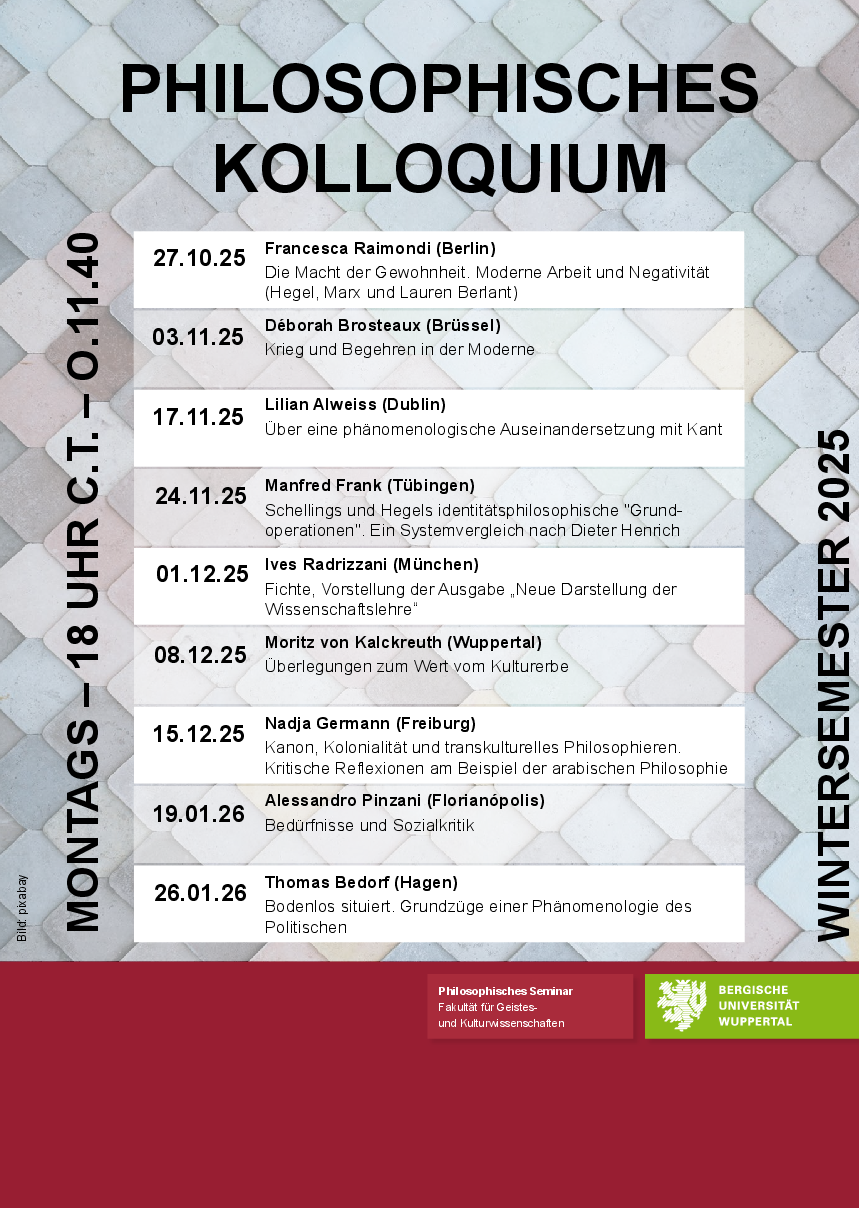 Aktuelles Programm des Philosophischen Kolloquiums Wintersemester 2025/2026